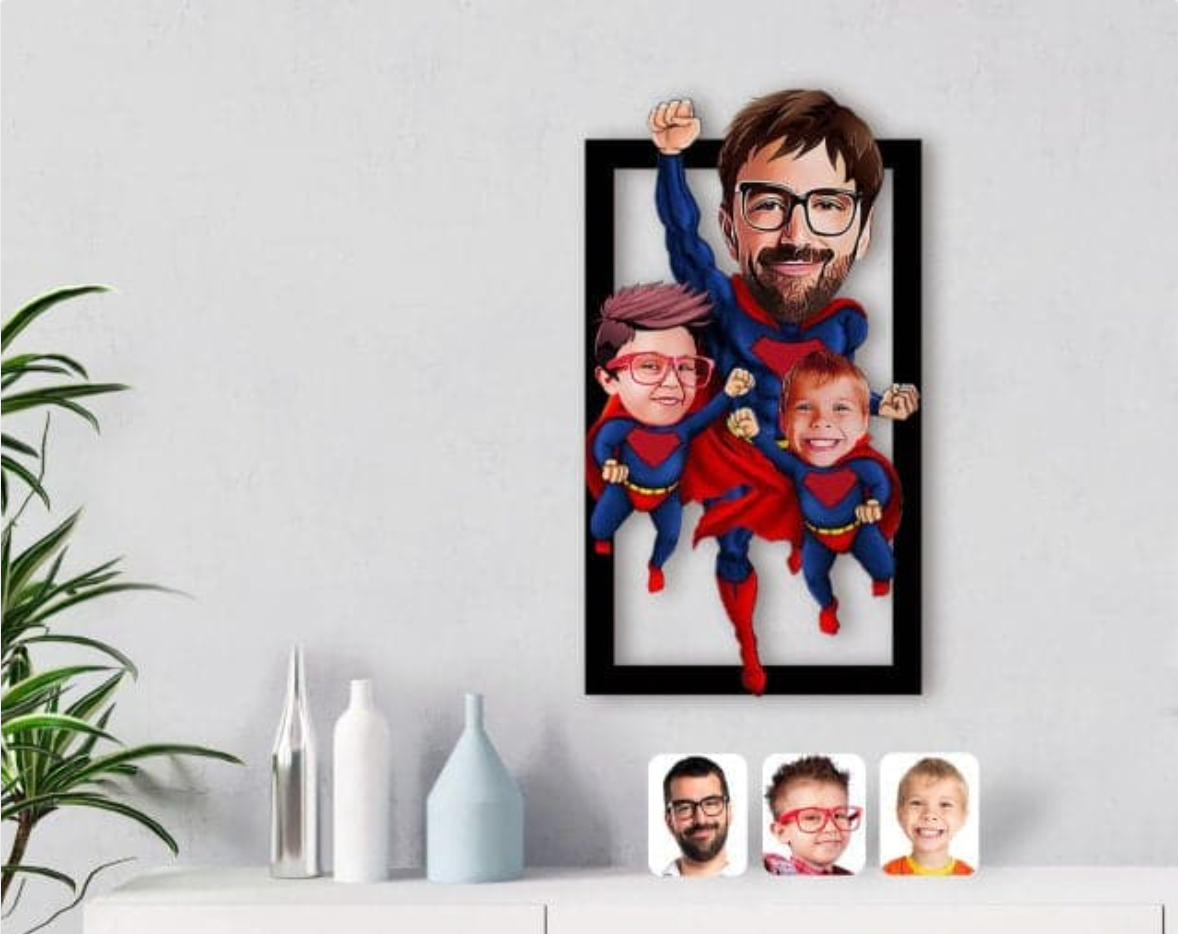 Personalisiertes 3D Cartoon Wandbild - Superhelden mit 3 Personen